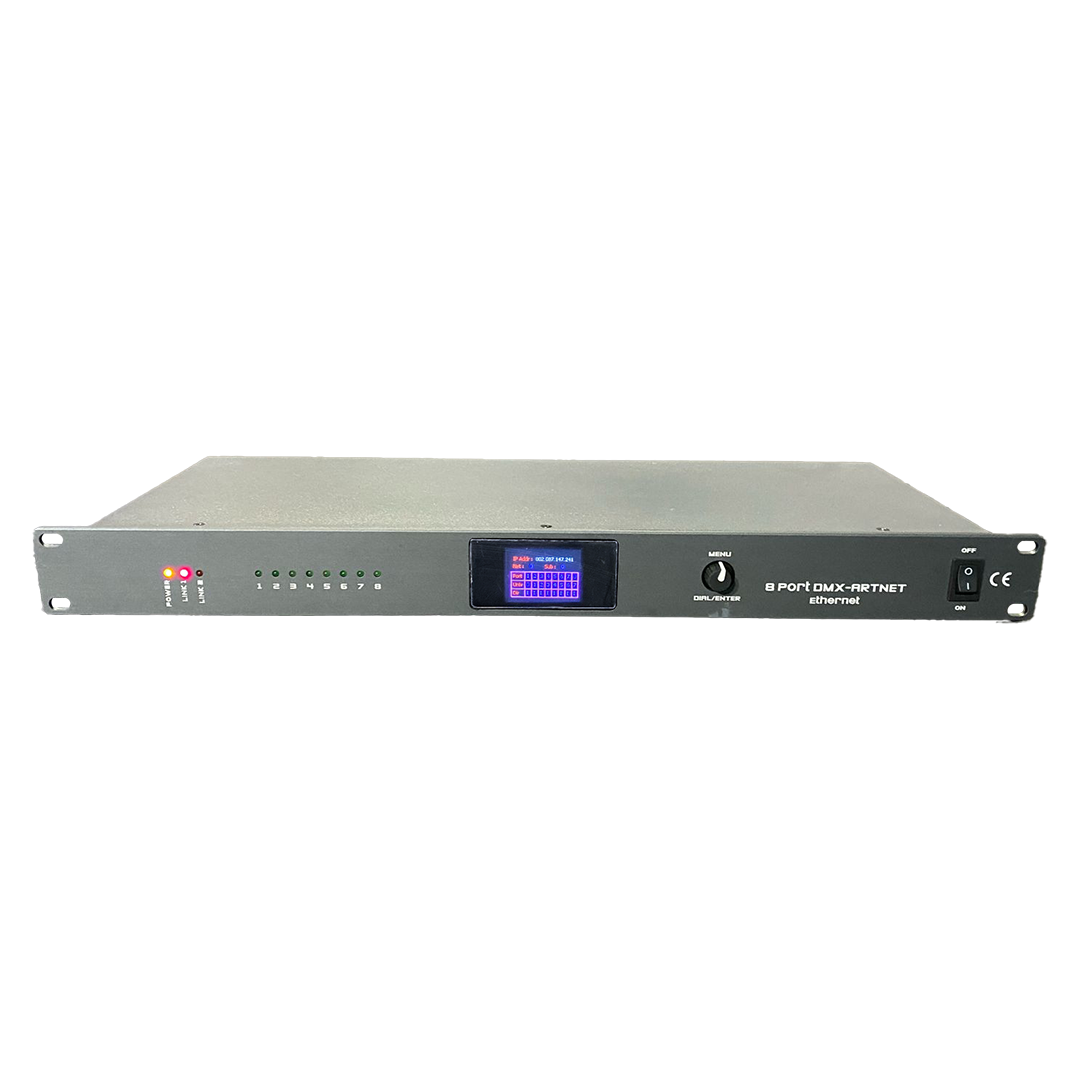 - The 8 DMX ports can be configured as either inputs or outputs.