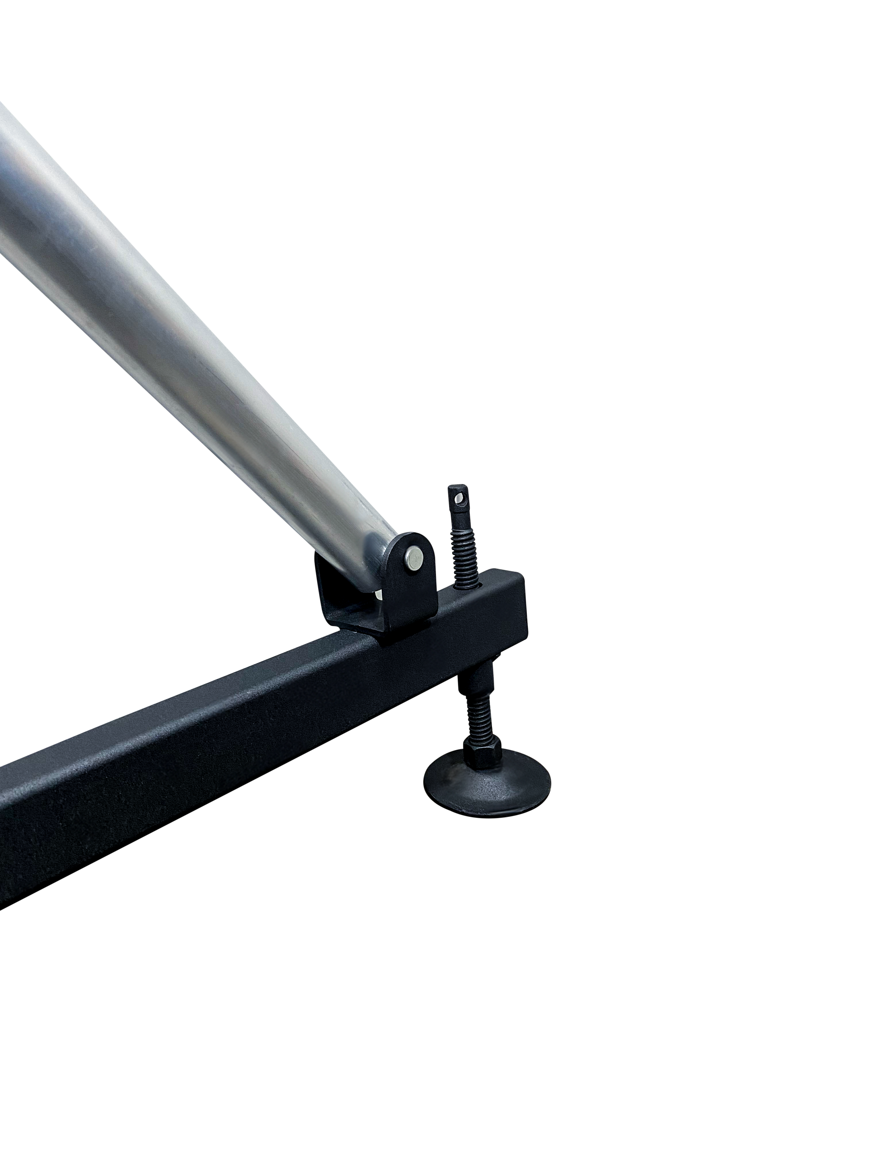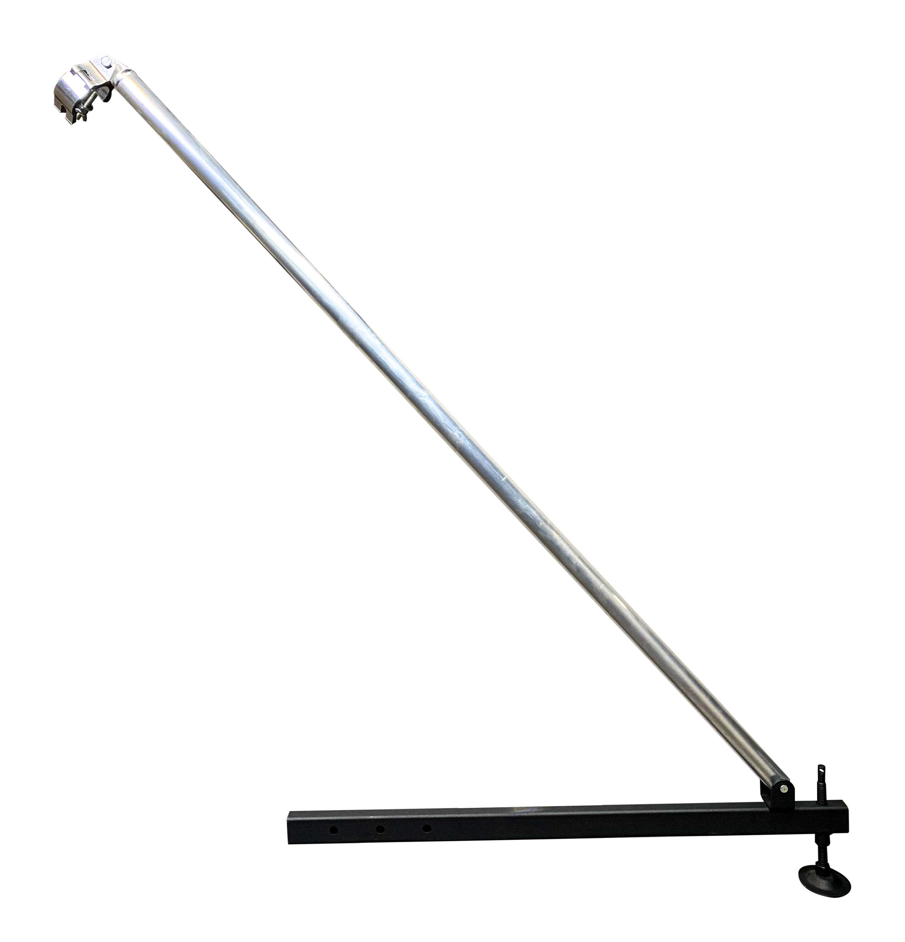 The XSF Clamp-on Outrigger is designed for aluminum truss towers. It attaches quickly and easily to the truss chords using half couplers and features an adjustable screw jack for leveling. The half couplers allow the outrigger to pivot laterally (side-to-side rotation), which makes positioning the screw jacks easier. Constructed from lightweight aluminum components, this outrigger is a robust and economical solution for safely supporting towers.
